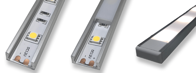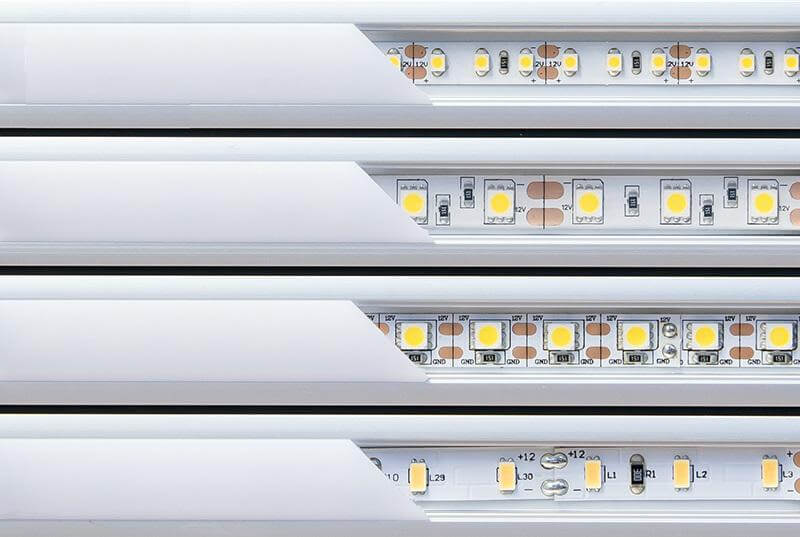 Un’ottima novità introdotta di recente è la striscia LED COB (scopri che cosa sono le strisce LED COB) caratterizzata da una striscia continua di LED che assicura una illuminazione perfetta anche su profili con copertura trasparente anche se con costi leggermente più elevati rispetto alle normali strisce.