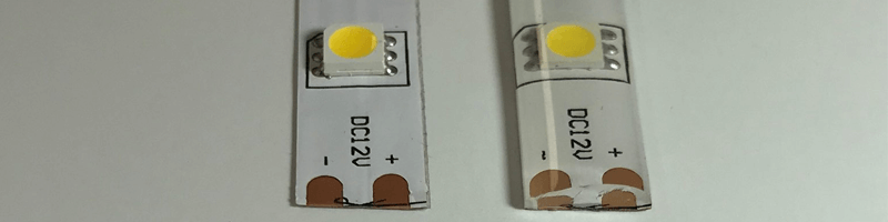 Il taglio delle strisce LED è molto semplice, un chiaro simbolo a forma di forbice ci indicherà dove poter tagliare la striscia (di solito ogni 5 – 8 centimetri): in quel punto ci sarà infatti anche una linea nera su ogni punto di taglio e un tampone di rame su ogni lato. I tamponi in rame assicurano che ogni striscia possa essere alimentata nuovamente anche dopo il taglio. Ciò consente anche di collegare tra loro strisce luminose per ottenere lunghezze maggiori o tagliarle per ottenere strisce più corte.