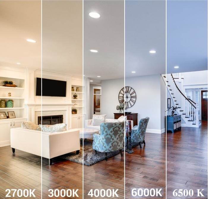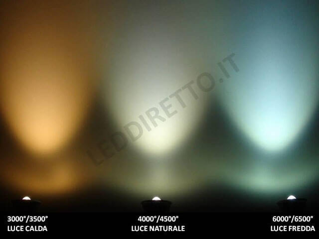 Normalmente si raggruppano le temperature di colore di luce in bianco Caldo, bianco Naturale e bianco Freddo con differenze facilmente visibili a colpo d'occhio, come notate nell'immagine in basso: