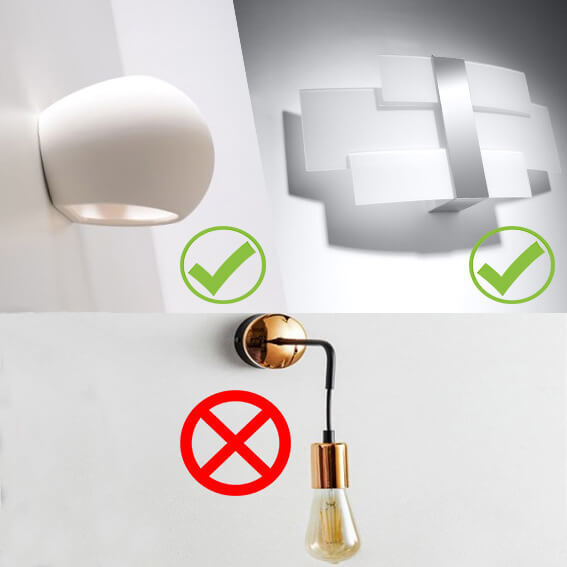 Ricorda di evitare le applique con lampade a vista e senza vetri protettivi in quanto la luce potrebbe abbagliare e stancare la vista dopo poco tempo.