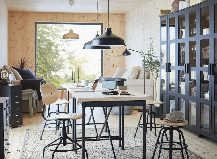Per avere un'ottima illuminazione in smart working, l'obiettivo è eliminare abbagliamenti e contrasti eccessivi ed evitare di proiettare ombre. Cerca invece dei modi per diffondere la luce in tutto l'ambiente per illuminare il tuo ufficio. Ad esempio si può utilizzare un lampadario a sospensione dotato di paralume o di una copertura satinata per "ammorbidire" e diffondere la luce.